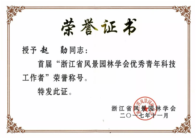 浙江人文園林股份有限公司趙勛被評(píng)為“浙江省風(fēng)景園林學(xué)會(huì)優(yōu)秀青年科技工作者 ”。
