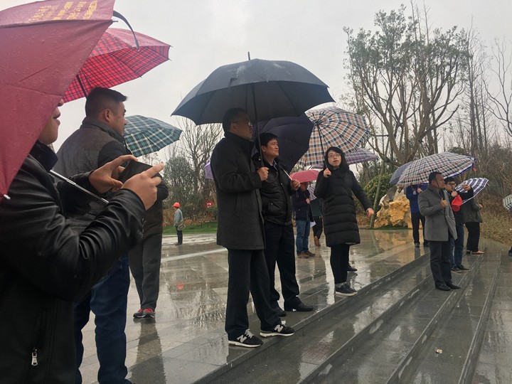 霏霏細(xì)雨中,考察團(tuán)參觀了鳳鳴湖、瑞龍戲水旱噴廣場(chǎng)、魚躍鳶飛等景觀節(jié)點(diǎn)。一路上,人文園林副總裁吳秋霞給考察團(tuán)詳細(xì)講述了書香公園的設(shè)計(jì)理念及營(yíng)造現(xiàn)狀,公園的建設(shè)贏得了眾領(lǐng)導(dǎo)的高度評(píng)價(jià)。