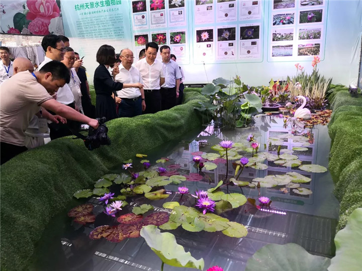 省政協(xié)副主席周國輝,省林業(yè)廳廳長林云舉,溫州市市長姚高員等一行參觀了我司展區(qū),聽取了荷花、睡蓮等水生植物在園林景觀、“五水共治”、濕地生態(tài)修復(fù)方面的應(yīng)用介紹,當(dāng)了解到我司在荷花、睡蓮新品種培育方面,尤其應(yīng)用轉(zhuǎn)基因技術(shù),選育耐寒型熱帶睡蓮成果時(shí),周國輝副主席等給予了高度評(píng)價(jià)。當(dāng)介紹到我司2017年登錄的睡蓮新品種“人文溫州”時(shí),溫州市市長、市人大主任和市政協(xié)主席等領(lǐng)導(dǎo)表現(xiàn)出了極大的驚喜。