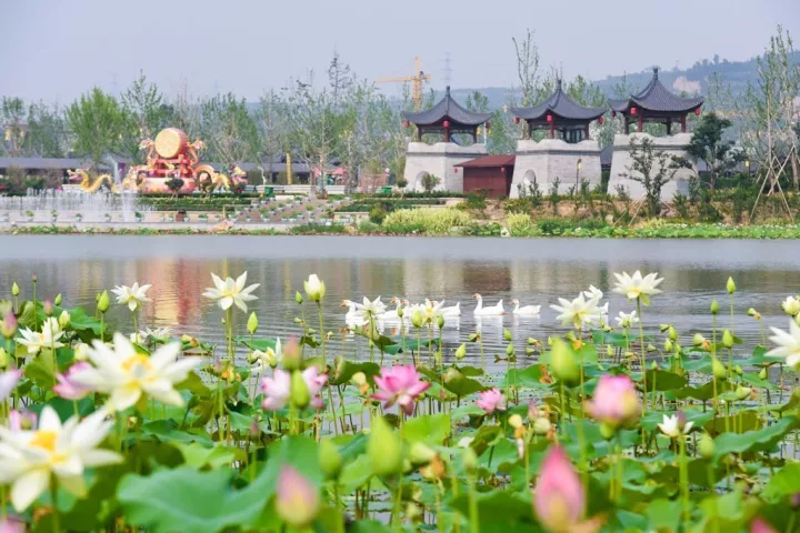 韓城國家文史公園內(nèi)豐富的水生植物品種