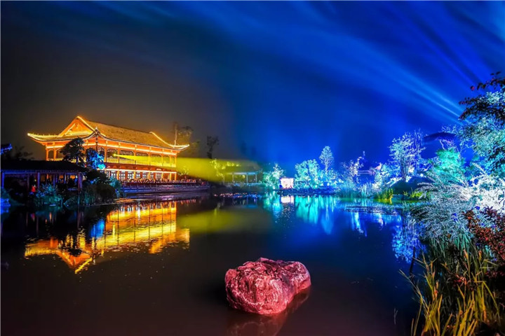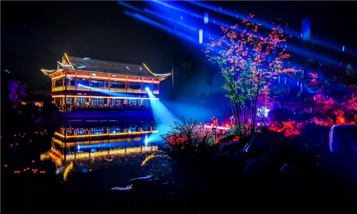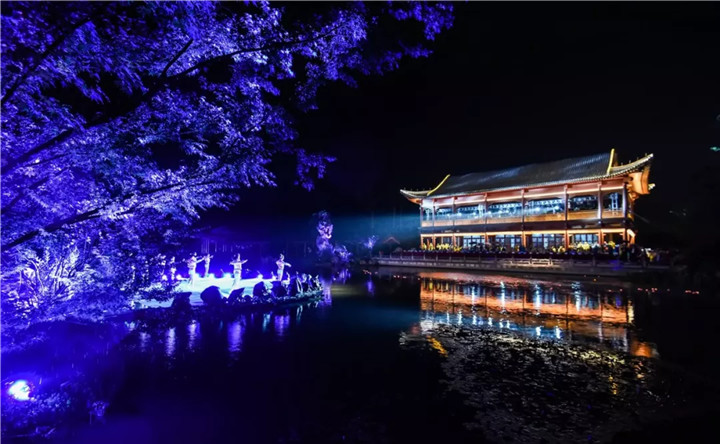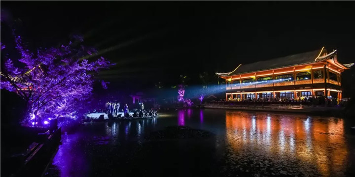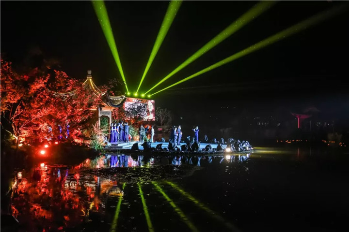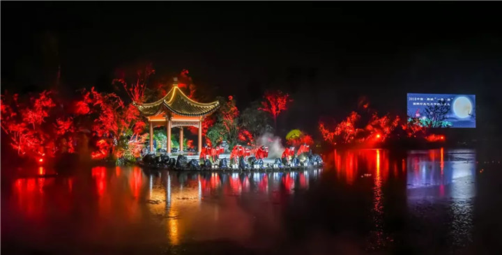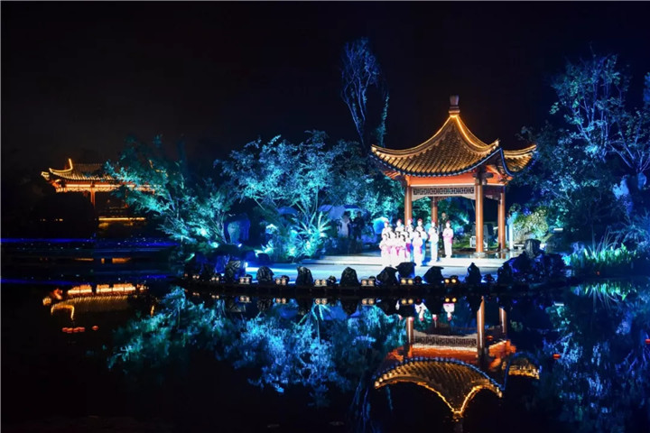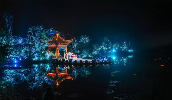 頒獎典禮上的園林實景版文藝表演,將節(jié)目的表現(xiàn)形式與亭臺軒榭橋舫湖及花草樹木充分結合,使藝術之美與自然之美在瓊島攬月上交相輝映,相得益彰,令人沉醉。