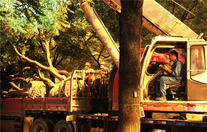 近日,如果你走在杭州天目山路的古翠路-萬塘路段,會看到路的兩邊豎起圍擋,工人們正小心翼翼將路邊一棵棵樹木挖起;如果你因為加班或夜游恰巧在凌晨三點路過,會看到那一顆顆捆扎好土球的樹木正被吊起、運走。