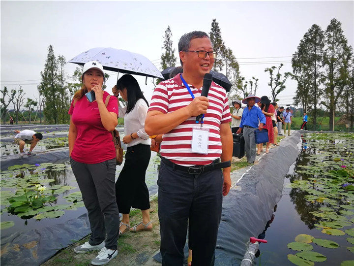 陳煜初副總裁給學(xué)員們現(xiàn)場(chǎng)講解睡蓮、荷花等水生植物相關(guān)知識(shí)
