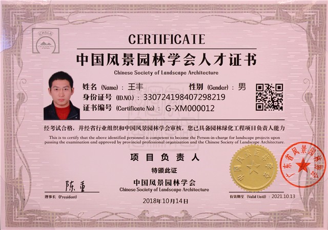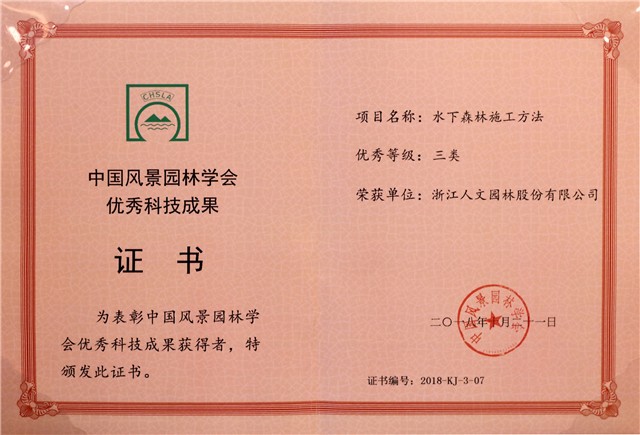 浙江人文園林股份有限公司為年會(huì)贊助單位之一,繼2014年“水生植物引種馴化及園林應(yīng)用”、2015年“荷花新品種選育及其園林應(yīng)用技術(shù)研究”、2016年“水生植物園林應(yīng)用指南”獲科技進(jìn)步獎(jiǎng)二等獎(jiǎng),2016年“西湖園林植物景觀藝術(shù)”、“睡蓮屬品種性狀的特異性、一致性、穩(wěn)定性研究”分別獲科技進(jìn)步獎(jiǎng)一等獎(jiǎng)、三等獎(jiǎng)后,今年人文園林再創(chuàng)佳績,發(fā)明專利“水下森林施工辦法”榮獲中國風(fēng)景園林學(xué)會(huì)三類優(yōu)秀科技成果獎(jiǎng),總裁助理王豐被評(píng)為中國風(fēng)景園林學(xué)會(huì)園林工程項(xiàng)目負(fù)責(zé)人首批人才。