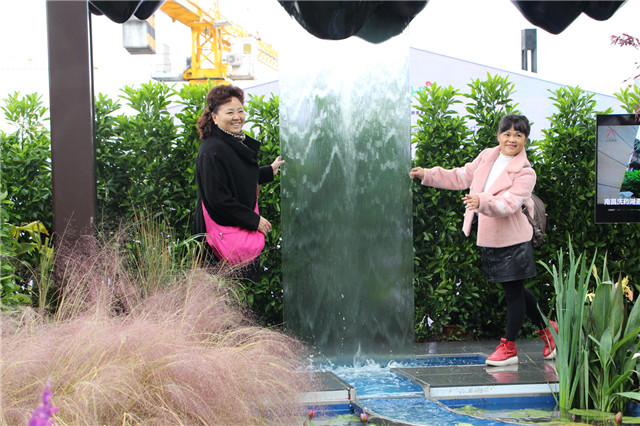 因為獨出心裁的設(shè)計和布置,人文園林展位受到了廣大市民的青睞,特別是流動水幕和鏡面水景,讓這里成為了市民們拍照的熱門地點,大家紛紛排隊合影,留下一個個精彩瞬間。