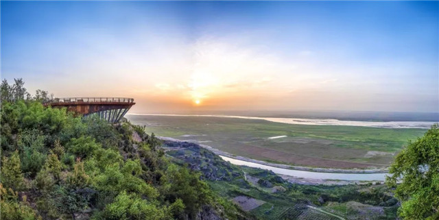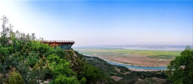 位于南段黃河最寬處的船頭形觀景臺,朝向黃河奔流的方向,似欲順流而下,一日千里,是建筑的大地藝術(shù)化,寓意在“三十年河?xùn)|,三十年河西”的滄桑巨變中,高速發(fā)展的韓城猶如一艘巨輪啟碇遠航、乘風(fēng)破浪。在觀景臺上遙望日月升起,極目千里,景象壯闊,正是韓城蒸蒸日上之勢。