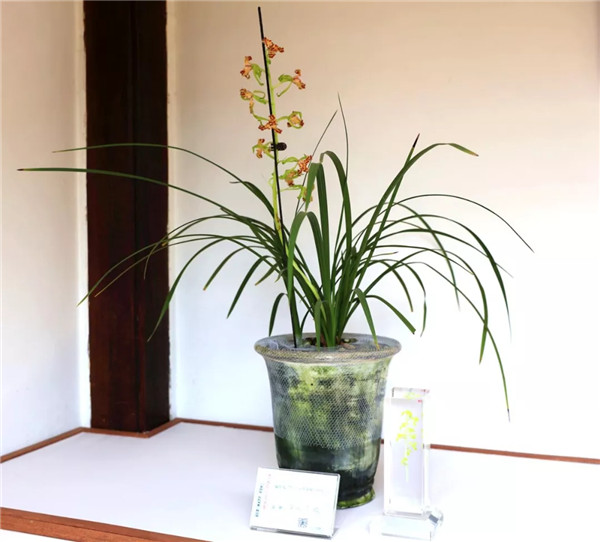 人文園林共有6盆蕙蘭參展,分別為“春江梅”、“盧氏蕊蝶”、“翠豐” 、“和諧梅”、“彩云澗”和“云中鶴”,皆為人文園林董事長陳勝洪多年來采集、收藏的精品。因?yàn)閷?duì)蘭花的熱愛與癡迷,30多年來,他傾力采集、培育了大量蘭花品種,“春江梅”這個(gè)品種采自桐廬山中,花桿翠綠出架,花守特好,葉姿半垂,幽香雅韻,如空谷佳人,陪伴他已有20多年。