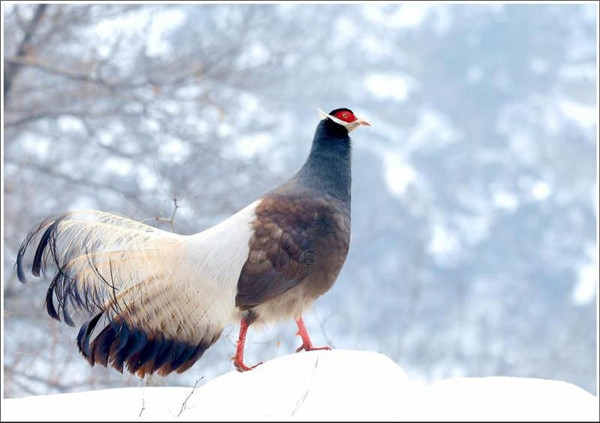 褐馬雞是馬雞屬中的一個(gè)種,是中國(guó)特產(chǎn)珍稀鳥(niǎo)類,被列為國(guó)家一級(jí)保護(hù)動(dòng)物。身高約60厘米,體長(zhǎng)1米~1.2米,體重5公斤,全身呈濃褐色,頭和頸為灰黑色,頭頂有似冠狀的絨黑短羽,臉和兩頰裸露無(wú)羽,呈艷紅色,尾巴高高豎起。翅短,不善飛行,兩腿粗壯,善于奔跑。 被譽(yù)為“國(guó)鳥(niǎo)”的它,既健碩有力,又美麗嬌媚,不輸?shù)ろ旡Q。它是我國(guó)特有、世界瀕危級(jí)珍禽,中國(guó)十大珍稀動(dòng)物之一。中國(guó)鳥(niǎo)類學(xué)會(huì)把褐馬雞作為會(huì)標(biāo)。它在國(guó)際上與大熊貓齊名,亦被世界雉類協(xié)會(huì)放在其會(huì)徽上。 褐馬雞以英勇善戰(zhàn)而著稱,一旦遇敵,絕不后退,定會(huì)與敵人“決一死戰(zhàn)”,表現(xiàn)出一種寧死不屈、視死如歸的精神。自古以來(lái),人們就將它看作勇敢的象征,以其羽做重要的裝飾。到了清代,以褐馬雞尾羽制成的“褐冠”,是激勵(lì)將士打勝仗的最高賞賜。特別是清代官員所戴的“頂戴蘭翎、花翎”,都是用褐馬雞的羽毛制成。