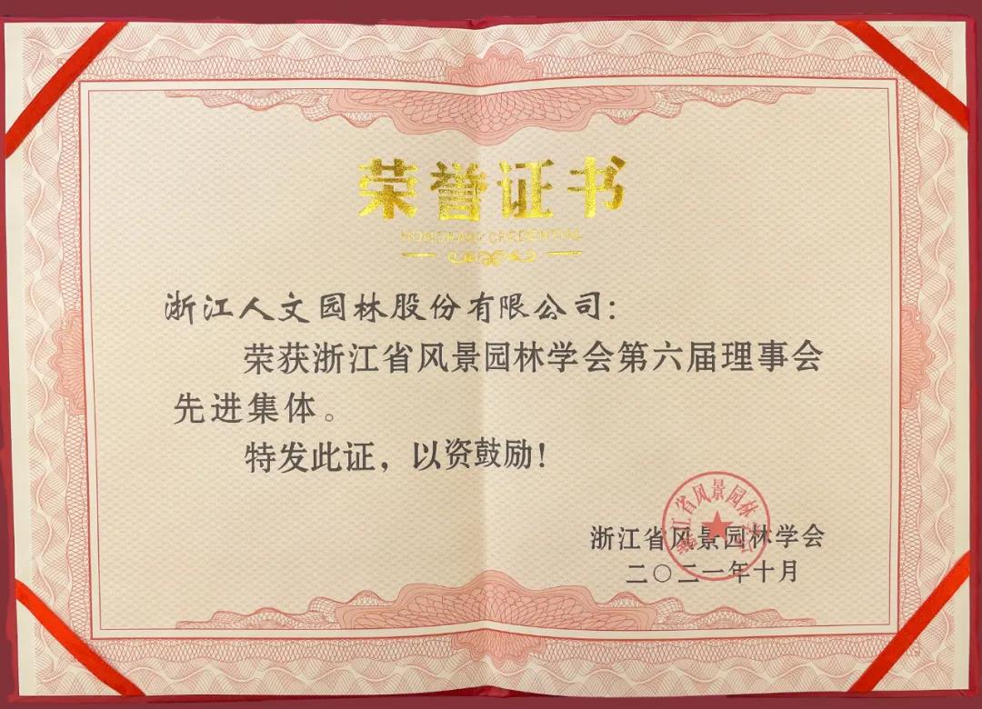 浙江人文園林股份有限公司在本次大會上獲得了浙江省風(fēng)景園林學(xué)會第六屆理事會先進(jìn)集體的榮譽(yù),公司董事長陳勝洪獲得了浙江省風(fēng)景園林學(xué)會第六屆理事會先進(jìn)個人以及浙江省風(fēng)景園林學(xué)會資深會員兩項榮譽(yù)。