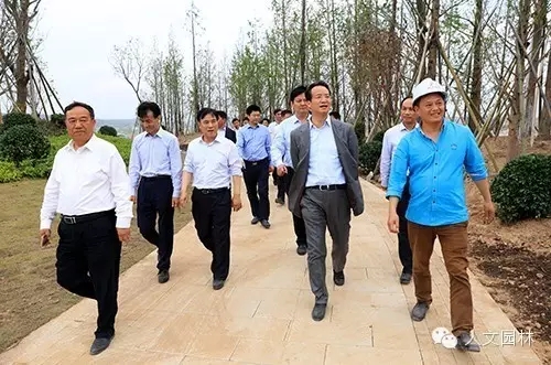 陳勝洪董事長陪同李智遠(yuǎn)書記和褚錦峰市長等領(lǐng)導(dǎo)視察在建中的文史公園