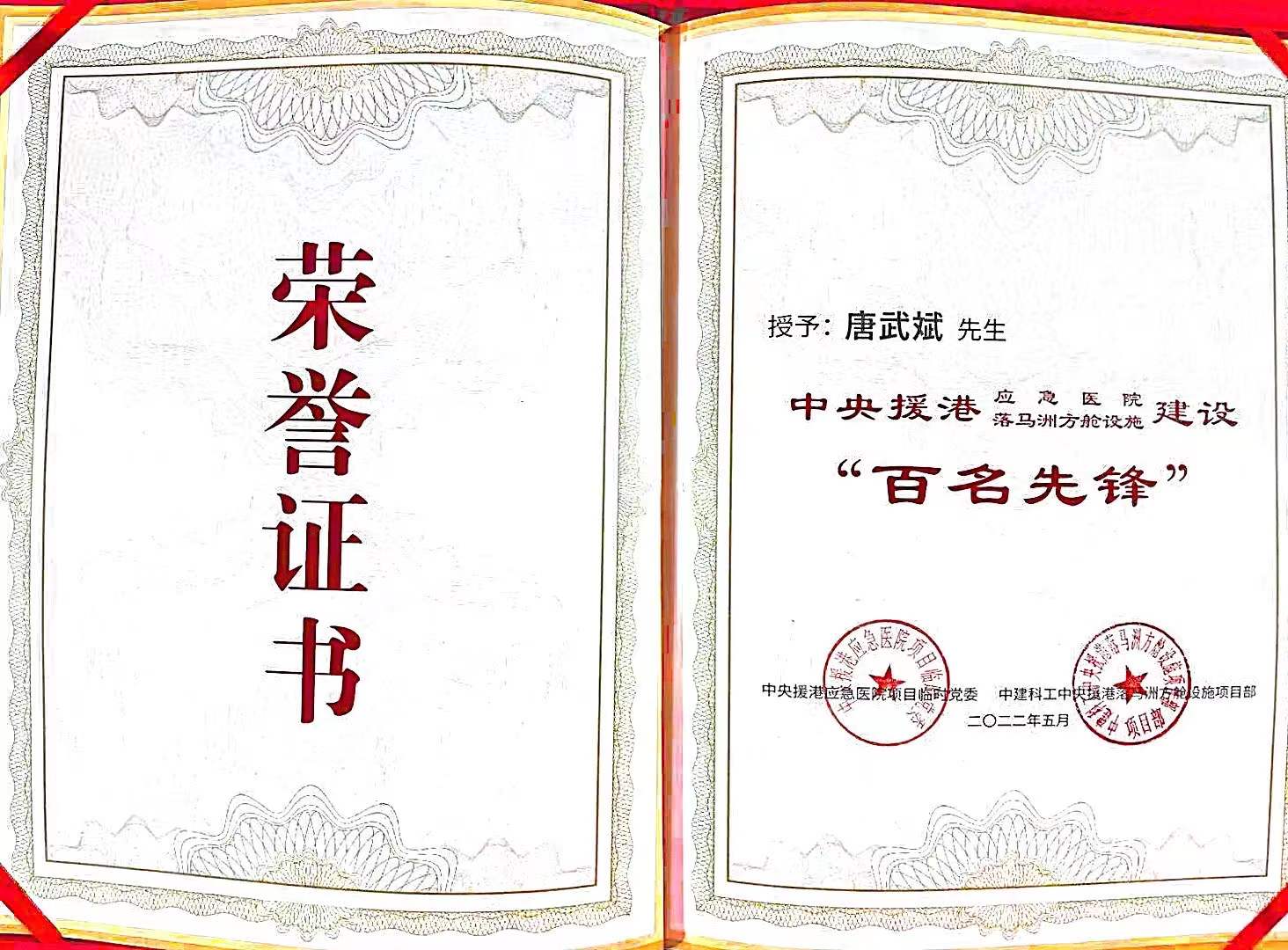人文園林項目總經(jīng)理唐武斌獲得了“百名先鋒”建設(shè)獎章
