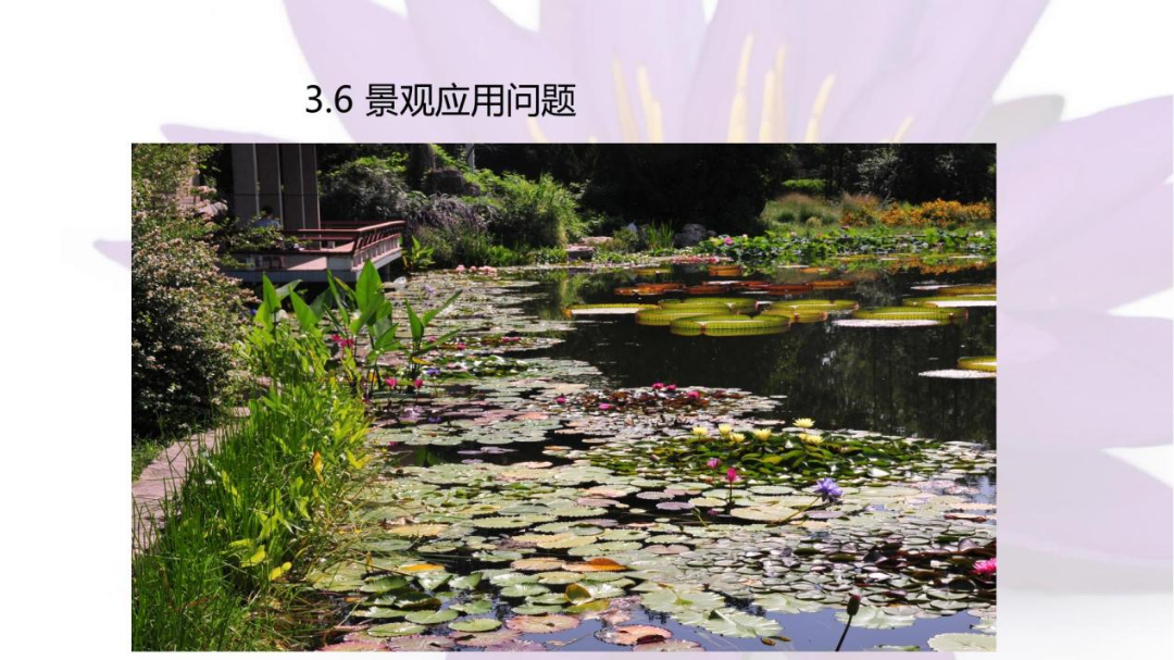 7、構(gòu)建水生植物園林應(yīng)用體系:從引種馴化、新品種選育到園林應(yīng)用一系列的成果構(gòu)建了一套較為完整的水生植物園林應(yīng)用體系。
