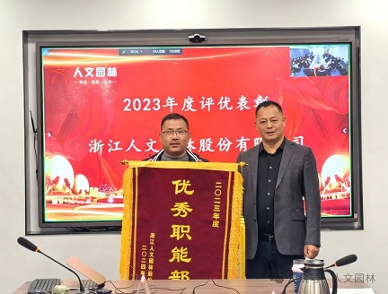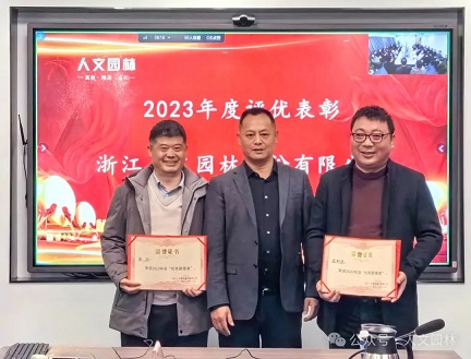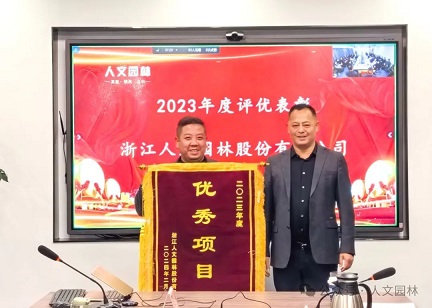 2023年度表彰大會上,表彰了過去一年為公司做出重大貢獻(xiàn)的先進(jìn)集體和優(yōu)秀個人,通過自薦、部門推薦、綜合評分及投票的方式,人文園林評選出了優(yōu)秀部門1個,優(yōu)秀項(xiàng)目部1個,優(yōu)秀管理者2人,優(yōu)秀員工8人。陳勝洪董事長為在場的獲獎代表頒發(fā)了證書及錦旗,獲獎代表或現(xiàn)場或連線發(fā)表獲獎感言,講述了他們與人文園林一起成長的故事,展現(xiàn)榜樣風(fēng)采。董事長鼓勵大家新的一年要持續(xù)拼搏,朝更遠(yuǎn)大的方向進(jìn)發(fā)。