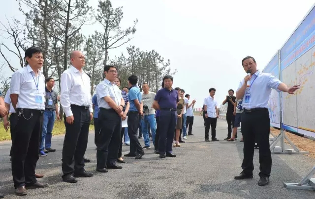 2017年6月15日下午,陜西省交通運(yùn)輸廳黨組成員、省公路局局長(zhǎng)萬(wàn)振江一行100余人蒞臨沿黃公路韓城段,視察沿黃公路韓城段工程建設(shè)情況。韓城市人民政府副市長(zhǎng)斯宏浩,韓城市交通局局長(zhǎng)梁紅勤,浙江人文園林有限公司韓城國(guó)家文史公園項(xiàng)目經(jīng)理孟利武、杭州人文園林設(shè)計(jì)有限公司沿黃公路項(xiàng)目總設(shè)計(jì)師甘禮寒全程陪同。