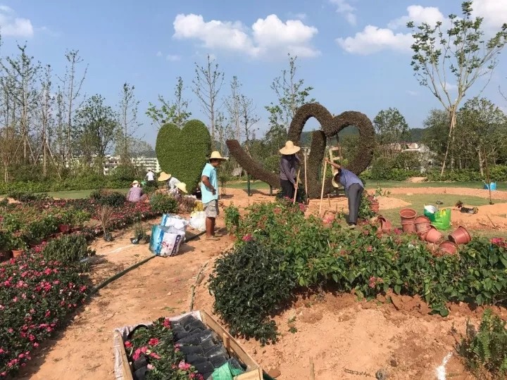 施工人員日夜趕工,將一棵棵小苗運(yùn)抵施工現(xiàn)場(chǎng)。