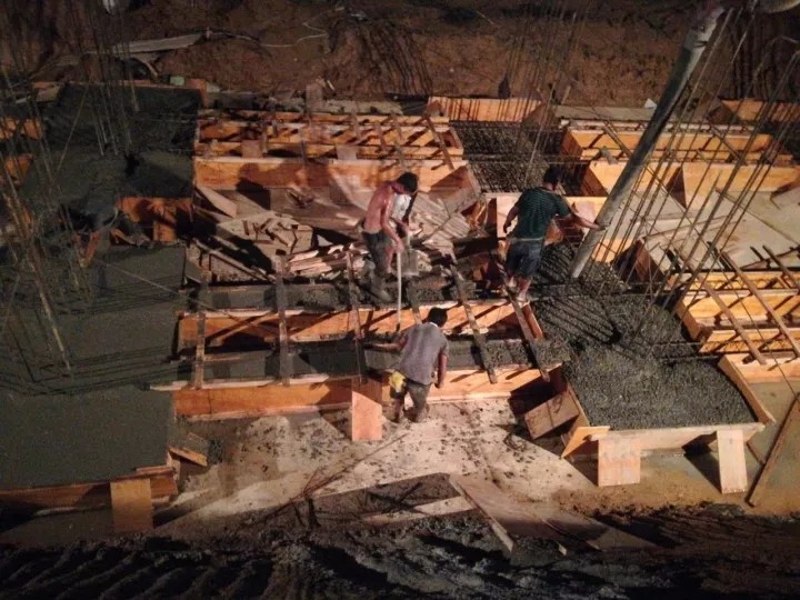 施工人員緊鑼密鼓的澆灌混凝土,確保每一個(gè)細(xì)節(jié)都保質(zhì)保量。
